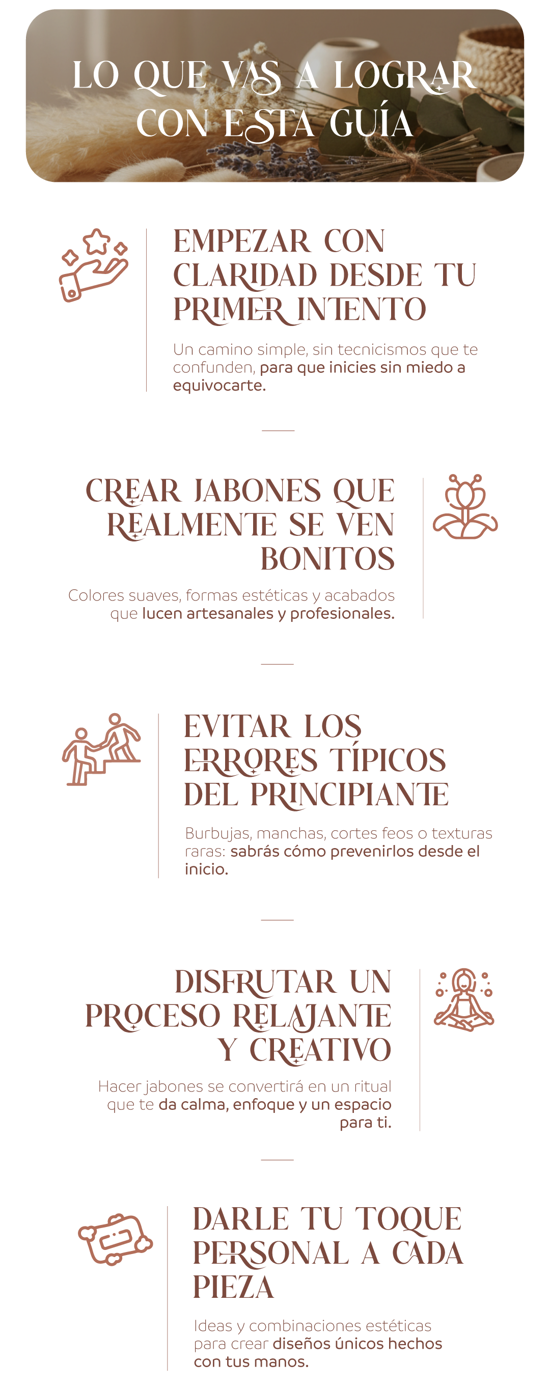 Por eso, si en 7 días sentís que este libro no te ayudó a dar tus primeros pasos en el mundo del jabón artesanal, te devolvemos tu dinero sin preguntas.